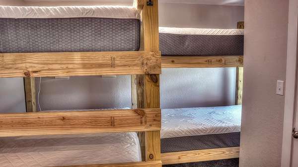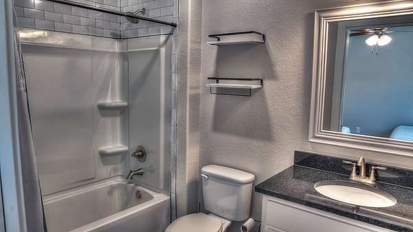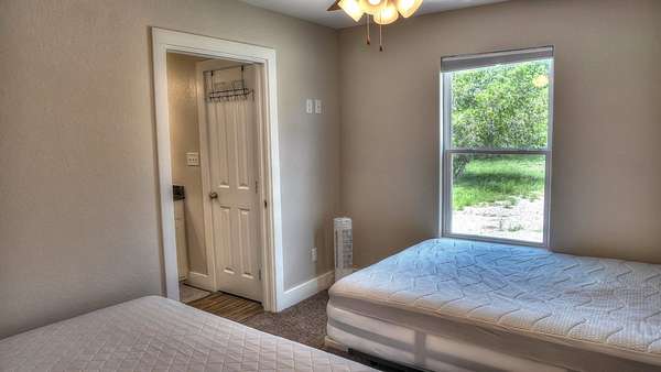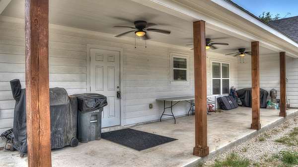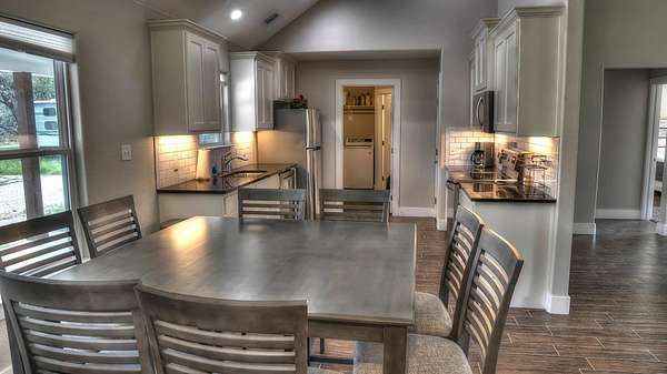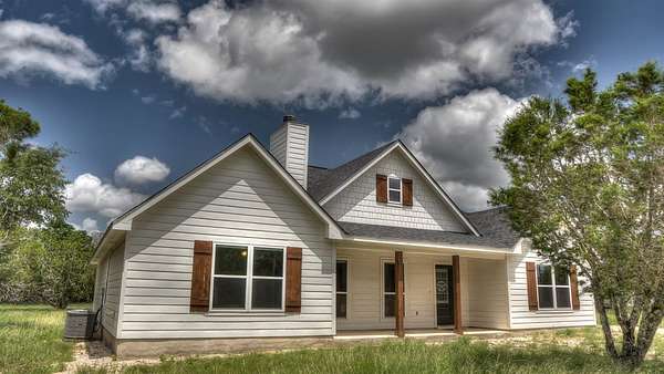 Discover this stunning, recently built home nestled on 1.77 acres within the private, gated Twin Forks Estates community, boasting Frio River access just steps from your back door! This thoughtfully designed 4-bedroom, 4.5-bathroom home features a split floorplan and an ensuite bathroom for each bedroom, providing over 1800 square feet of spacious living area. The bedrooms are generously sized, each equipped with closets, while the primary bathroom offers a dual vanity, a glass-door tiled shower, and a walk-in closet. The living room showcases a vaulted ceiling and a wood-burning fireplace, while the kitchen features stainless steel appliances and quartz countertops. A half bathroom is conveniently located in the laundry/mud room, with easy access inside the back door. Outside, you'll find a covered back porch, a large backyard, and an RV hookup. Take a short walk from the backyard to the Frio River for a swim or a fishing trip, and enjoy 35 acres of nature preserve for exclusive use by Twin Forks owners, perfect for hiking or ATV rides. Being sold fully-furnished and all appliances will convey!