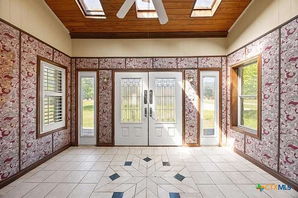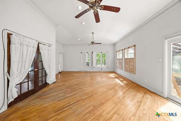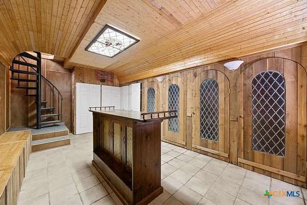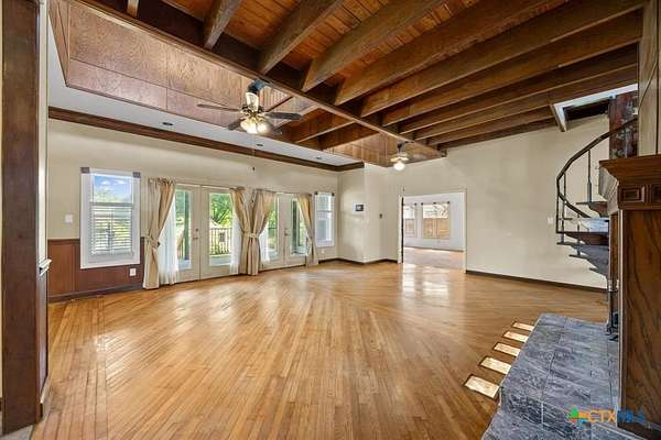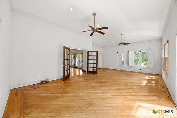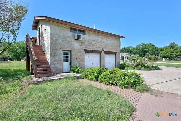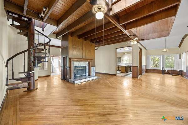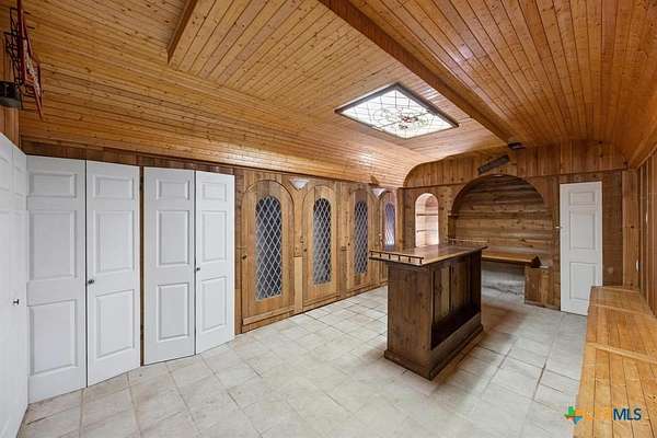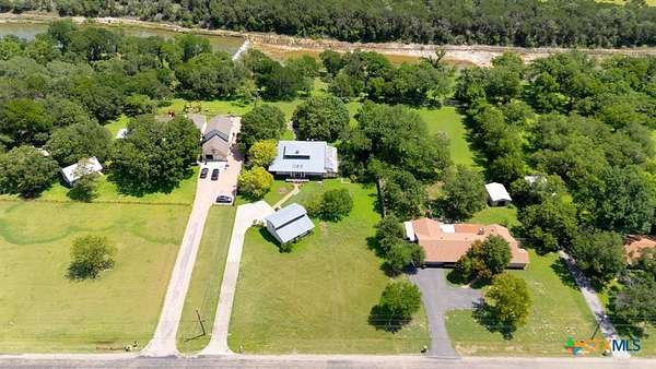 2.02 Acre Estate on the San Gabriel River! Enjoy direct river access right from your own property! This 3,155 square foot home is ready for a complete renovation by Magnolia's Chip and Joanna Gaines to allowing you to personalize it to your taste. The home features beautiful wood accents throughout, soaring ceilings enhanced with wooden beams, and ample windows that invite an abundance of natural light. The living area features a glass-enclosed fireplace, offering relaxing views of the rear of the property. The generous primary suite is situated on the main level and is equipped with a spacious bath with a walk-in shower, large soaking tub, and a large closet with plenty of built-in storage. Wine Connoisseur? Access the expansive lower-level wine cellar from the dining area by descending a charming winding staircase. This inviting wine cellar features wood-planked ceilings, along with a serving bar and built in seating. Upstairs, discover an cozy living area complete with a fireplace, providing additional living or entertaining space. The grounds are graced with beautiful, towering trees that provide shade, and you can access the San Gabriel River directly from the back of the property, where you can unwind to the soothing sounds of the flowing water. Moreover, the two-car garage features an apartment above, equipped with a kitchenette, living area, bedroom, and full bath-perfect for guests. Estate sale, being sold as-is.