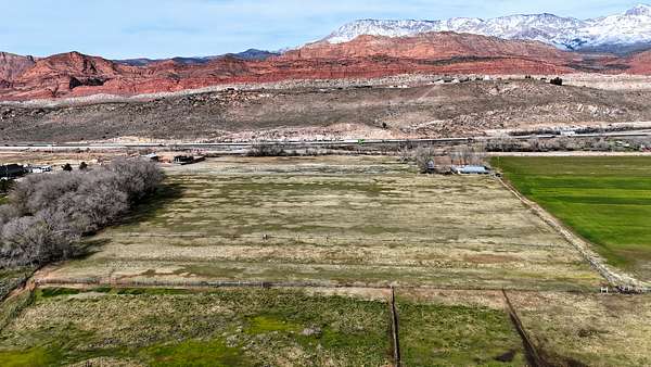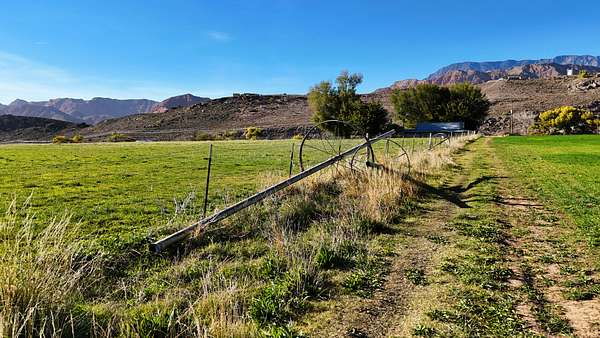 The terrain is primarily level, which may reduce grading needs depending on the intended use. Views from the property include surrounding red rock formations and open skies typical of southwest Utah. The soil quality reflects its agricultural past and may support continued farming, hobby agriculture, or landscaped residential uses where permitted.