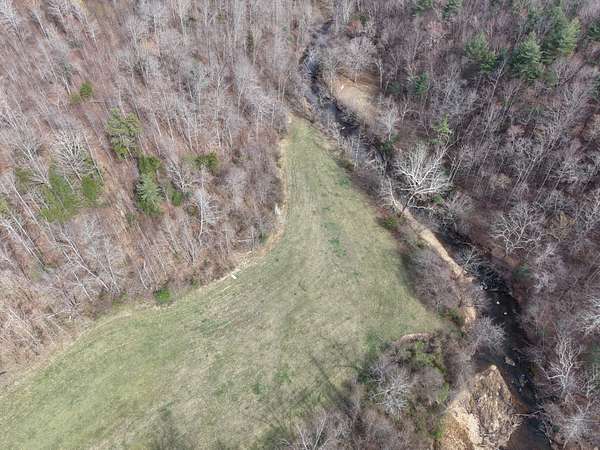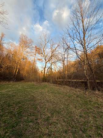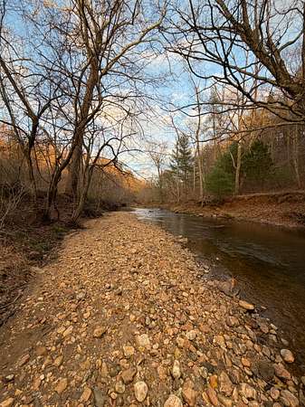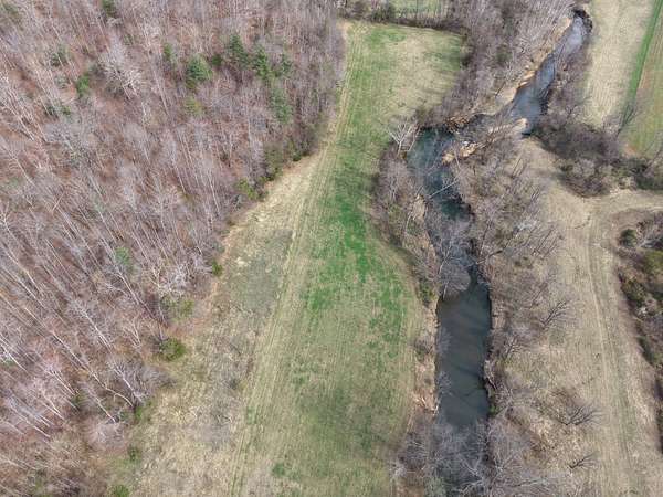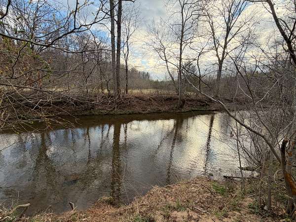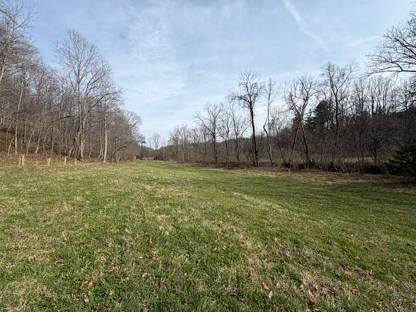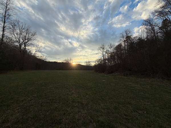Approximately 8 acres of open river-bottom fields provide opportunities for food plots, staging areas, or light equipment use, while the surrounding hardwoods--primarily oak, hickory, and beech--offer reliable mast production. The terrain rises gradually into southern-facing hillsides, giving the property both privacy and multiple locations suitable for a cabin, recreational setup, or future homesite.