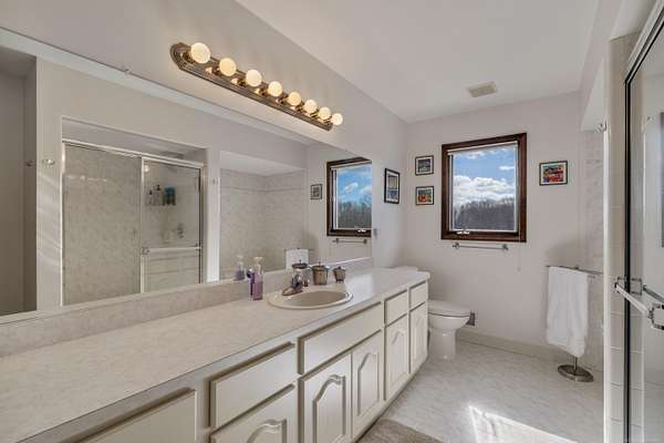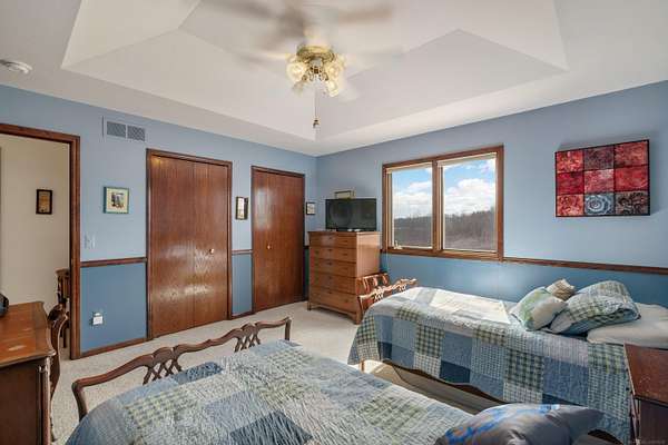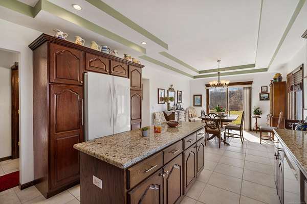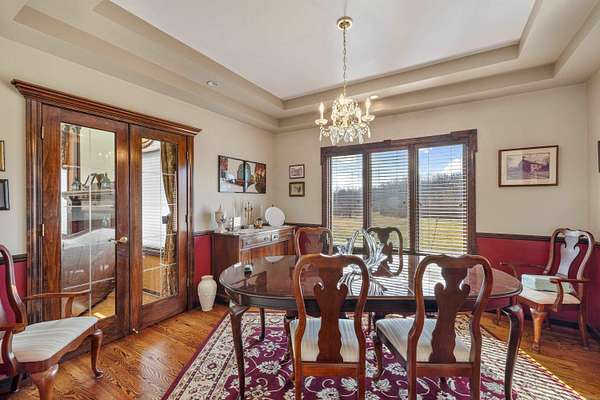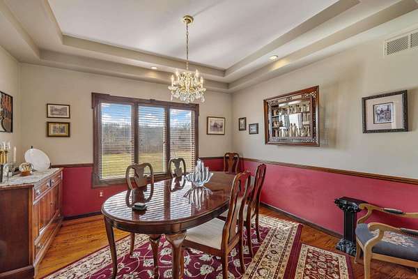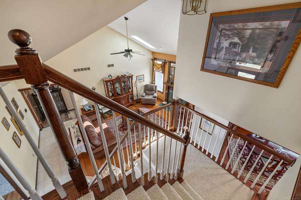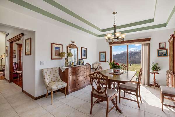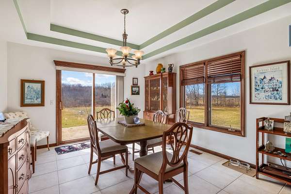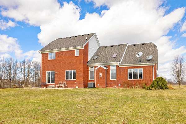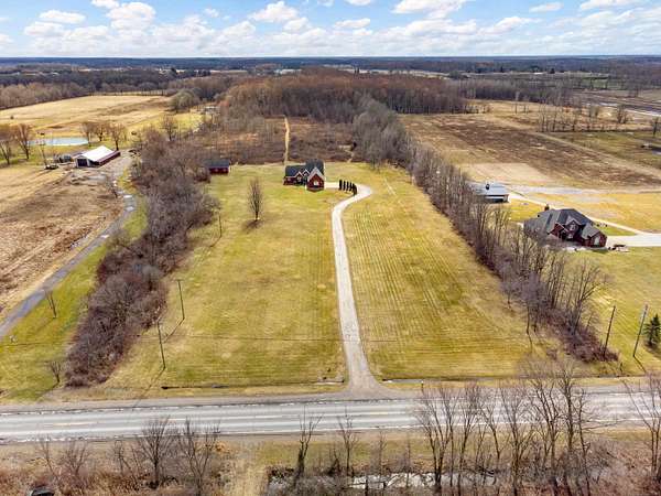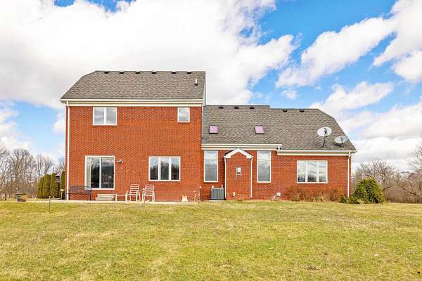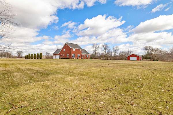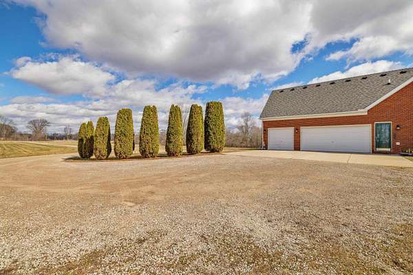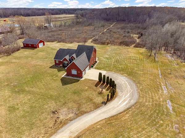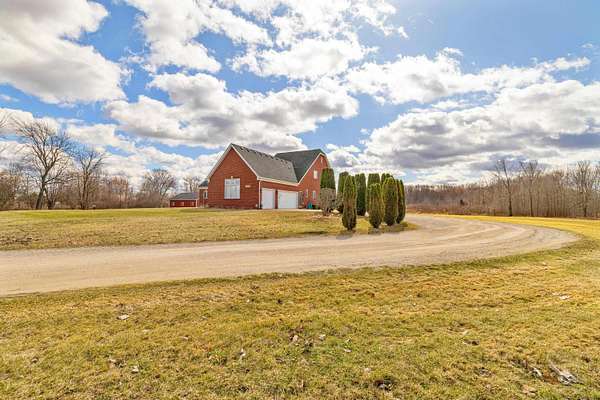 Nestled on a serene and private 15.32-acre property with hunting rights, this beautiful split-level brick home offers the perfect blend of comfort, character, and peaceful country living. Set far back off the road, the home provides exceptional privacy with virtually no traffic noise, creating a truly tranquil setting. Inside, you’ll fall in love with the stunning vaulted ceilings accented by skylights, along with elegant arched and stained-glass windows that fill the home with natural light and charm. The stylish kitchen features granite countertops, a tray ceiling, and a cozy eat-in dining area, while a separate formal dining room provides the perfect space for gatherings and entertaining. The first-floor primary suite offers convenience and comfort with a spacious full bath and walk-in closet. Downstairs, the massive basement—already plumbed for a bathroom—offers endless possibilities to finish into your dream space, whether it’s a recreation room, home gym, or additional living area. Outside, a large pole barn provides the perfect setup for a mechanic’s garage, workshop, or hobby space, offering plenty of room for tools, equipment, and projects. Surrounded by beautiful acreage and nature, this property is a rare opportunity to enjoy privacy, space, and the outdoors while still having a warm and welcoming place to call home.