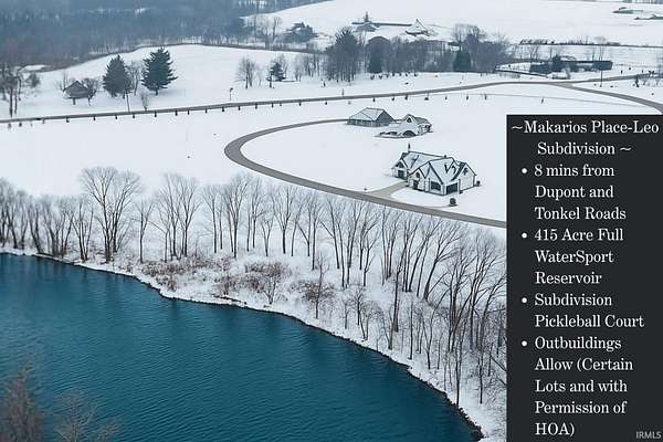 Open houses Sundays in Makarios~LOT #3 In Makarios Place: Build your customized, dream home with Star Homes on this builder exclusive lot. Welcome to this stunning 0.48 acre lot in the desirable Makarios Place subdivision. Nestled in a scenic, tree-lined setting, this property offers a blend of peaceful, woodsy living with convenient access to modern amenities within a short commute to Fort Wayne. Located near the Saint Joseph River and Riverside Park in Leo. The subdivision features a pickleball court, pond views, and walking trails offering opportunities for outdoor recreation. Located in East Allen School District/Leo Schools. Makarios Place lots have city sewer, city water and electricity available.*Floor plan provided is inspiration purposes only. Any and all custom plans can be built on this lot.