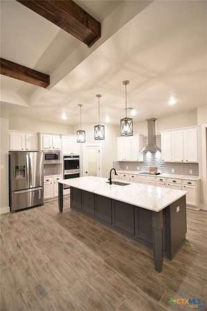 Located in the highly sought-after Leon River Estates, this exceptional Paxton Homes property offers refined country living on 10 beautiful acres within Belton ISD and located along Leon River. Featuring 4 bedrooms and 3.5 bathrooms across 2,965 square feet, this thoughtfully designed home blends elegance, functionality, and space. The interior showcases beamed ceilings, a built-in fireplace, custom cabinetry, and a stunning designer backsplash that anchors the open-concept living area. A formal dining room provides the perfect setting for entertaining, while a dedicated flex room and mudroom add versatility and everyday convenience. The spacious primary suite includes a luxurious bathroom with a separate soaking tub and walk-in shower. Additional bedrooms are generously sized and well-appointed. Outdoor living is elevated with a covered porch complete with an outdoor kitchen, ideal for hosting or relaxing while enjoying the expansive property. A 3-car garage offers ample storage and parking. Situated in Belton, Texas, this home delivers the privacy of acreage living while remaining close to town conveniences-an exceptional opportunity in one of the area's most desirable communities.