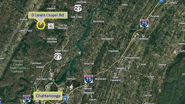 From downtown Chattanooga - take HWY 27 North to Soddy Daisy.....Exit to Hwy 111 North toward Dunlap.....Exit at Lewis Chapel Road & turn left......Property is 0.4 mile on the right at Lewis Chapel Rd & Picnic Rd....Sign on Property.