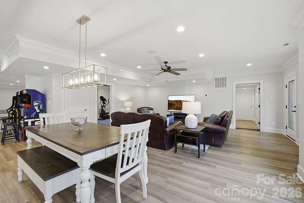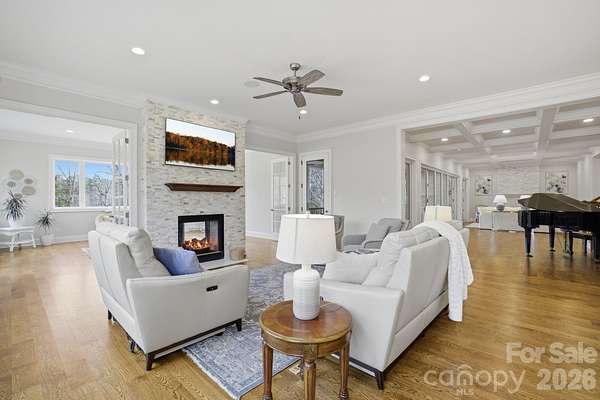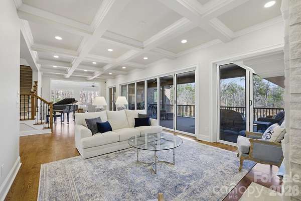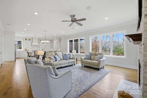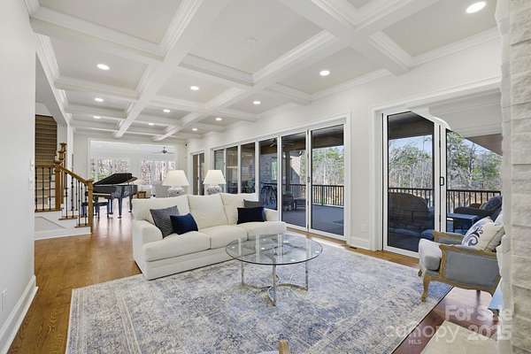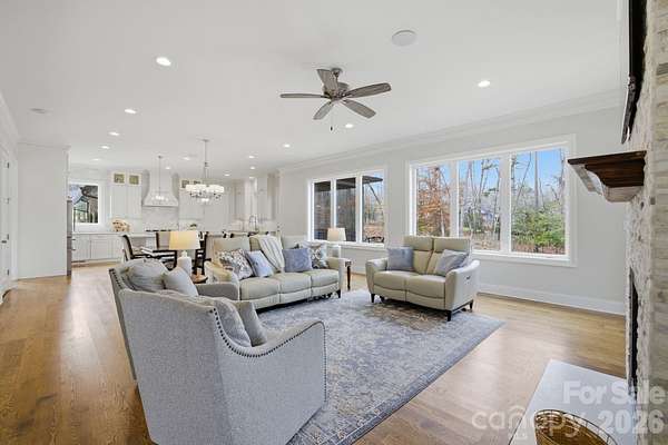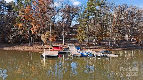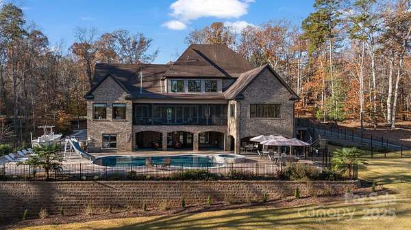 Set on the shores of High Rock Lake, 875 Starboard Reach offers an exceptional lakefront lifestyle defined by space, flexibility, and resort-style amenities. Situated on nearly 3 acres, this custom-built residence blends elevated design with everyday livability-perfect for entertaining, multigenerational living, or extended lake stays. The main home showcases expansive living spaces with panoramic water views, multiple fireplaces, and seamless indoor-outdoor flow. A stunning nano-style folding door system opens to a fully screened veranda, creating over 30 feet of unobstructed connection between the gallery and outdoor living areas. Enjoy a heated saltwater pool and spa, outdoor kitchen, screened grilling deck, and multiple terraces designed for year-round enjoyment. Adding rare versatility, the property includes a private second living quarters above the garage, complete with a bedroom, full bath, living area, laundry, and full kitchen-ideal for guests, extended family, or private accommodations. The full walk-out basement further expands the home's functionality with an additional kitchen, media and recreation rooms, exercise space, workshop, and guest accommodations-perfect for hosting or creating dedicated entertainment zones. Outdoors, lake living takes center stage with a two-slip aluminum dock featuring an oversized deck and boat lift, complete with power and water. A gated drive, irrigation system, dusk-to-dawn accent lighting, and mature tree-lined privacy complete the setting. Thoughtfully equipped with a 10kW solar array, whole-house natural gas generator, monitored security system, and whole-property Ubiquiti WiFi, this home delivers peace of mind alongside luxury. With easy access just one hour from Uptown Charlotte, located within the Yachtsman's Point community, residents enjoy lake access, walking trails, and recreational amenities-all while feeling worlds away. This is more than a home-it's a private lakefront retreat designed to live, gather, and escape beautifully.