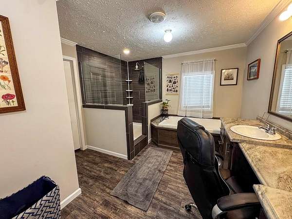 The home offers a covered porch view of arena, an open concept living space, wood-burning fireplace, and a large matster bath. Property is equipped with both a water well and rural water line for maximum convenience and flexibility.