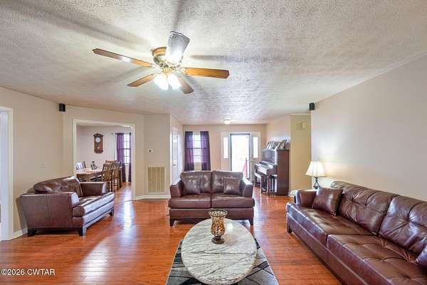 Nestled on 7.6 pristine acres of peaceful countryside, this immaculate brick 3-bedroom, 2-bath home offers the perfect blend of classic charm and comfort. Step inside to a spacious living room featuring a cozy gas log fireplace-ideal for relaxing evenings. The well-appointed kitchen with breakfast bar flows seamlessly into a separate dining room, while the inviting 3-season sunroom brings the beauty of the outdoors in year-round. Convenient main-level living includes a 2-car attached garage, plus a detached 1-car shop for hobbies/storage, storm shelter for peace of mind. Enjoy spacious home and property for gardens, animals, or recreation on your own land-yet close enough to town for everyday needs. This move-in-ready rural retreat is waiting for you to call it home!