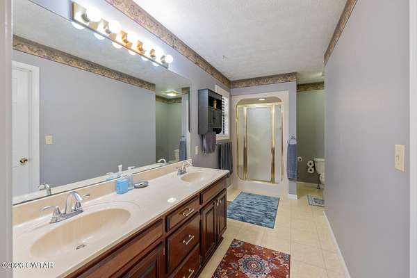- Blown/Textured Ceilings, Breakfast Bar, Ceiling Fan(s), Central Vacuum, Double Vanity, Entrance Foyer, Fiber Glass Shower