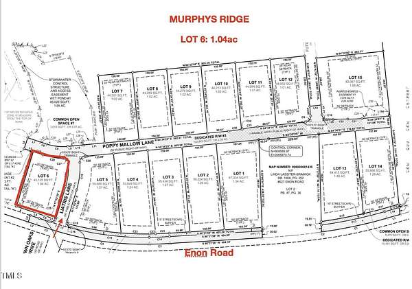 Escape to Murphys Ridge and experience the beauty of Lot 6's 1.04ac homesite. This wooded, level building site is full of hardwood trees and privacy. When choosing to make Murphys Ridge home, you will 1) Choose your lot. 2) Choose your Builder. 3) Choose your house plan! (Ask about the option to bring-your-own-builder). Located 10 miles south of Oxford and Northwest of Creedmoor NC, with an easy commute to Duke University, Research Triangle Park and Downtown Durham this location is convenient to multiple areas of commerce and just rural enough to feel like 'the countryside'. Experience the mountain 'feel' of Murphys Ridge. Take a deep breath and enjoy the quiet privacy of this new construction community. Large lots with room to play and hike the neighborhood acres & acres of creeks and forest. Welcome Home to Murphys Ridge.