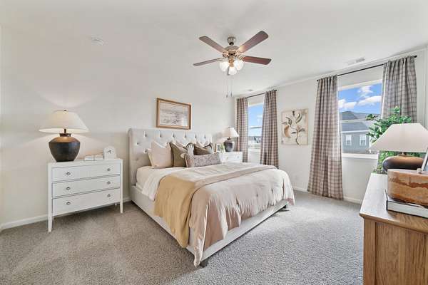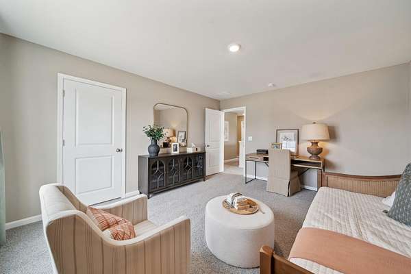 Step into the Salem model, a thoughtfully designed home offering an open-concept layout that combines modern style with ultimate functionality. The main level features a welcoming family room, a gourmet kitchen with casual dining space, a versatile flex room, a laundry room, and a convenient powder room, all designed for everyday living and effortless entertaining. Your FIRST FLOOR PRIMARY SUITE is a true retreat, complete with a large walk-in closet and a luxurious bath featuring separate vanities and a private water closet for added privacy. Upstairs, enjoy a spacious bonus room with TWO walk-in closets, a full bathroom, and three additional generously sized bedrooms. This home offers the perfect blend of peace and convenience on a 2 acre lot, just minutes from Charlottesville. Enjoy stunning Blue Ridge Mountain views and easy access to outdoor activities.