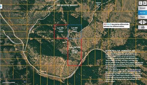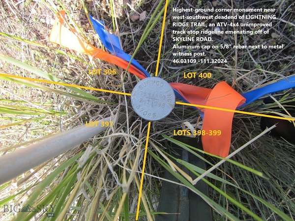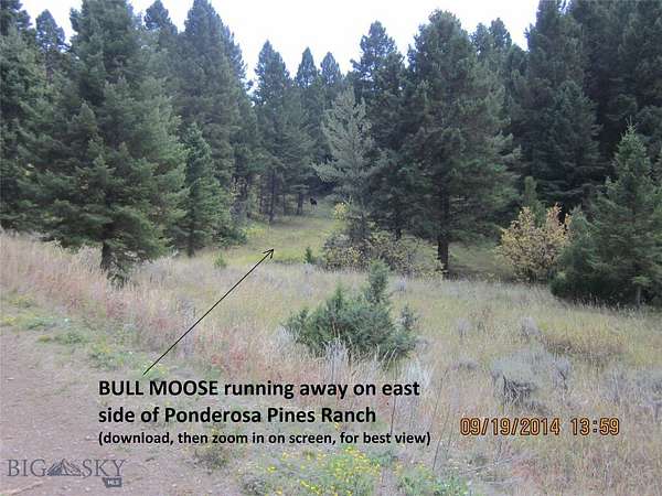 MOTIVATED SELLER dropped asking price by $3,000 on adjoining acreages in prime deer/elk country in time for the nearly 3-month archery/rifle big game seasons. 10-acre Lot 396 has breathtaking views from its SE corner & relatively flat building site with incomparable seclusion, ideal for building that getaway cabin. Elevation of 5465' means access would be seasonal via ATV-4x4-snowmobile using Lightning Ridge Trail. Cool summer breezes, bountiful wildlife (pictured) make this a most desirable property at about one hundredth of price per acre compared to nearby Gallatin Valley & Bozeman. Retired FWP biologist says 750 head of elk reside in the area, not counting migrants. Seller wants cash, so buyer should have some assets to use as collateral for a bank loan to pay seller with cash. Electricity is via solar, wind, propane, generator or a combo. Rainwater collection system off of a cabin roof would be a least expensive way to go. Owner says there is a wet spot in SE quadrant where moose have been. PUBLIC LANDS lie 1.5 mi NE and SW; PUBLIC RIVER LANDS are 8 mi drive where entire river can be fished legally, or where one may watch migratory waterfowl or upland game birds being chased by eagles. Montana has a little known regulation called "non-qualified Ag land" such that if connected acreages add up to 20+ acres, property tax per 20 acres is about the same as for 10 acres; accordingly, as of June 2023 Lot 398-399 with a well is for sale searching with #378991 & Lot 400 is for sale searching with #374664. As of June 2023 access to upper northwest corner via Skyline Road is marginally possible in a 4x4 due to very deep, washed out ruts so alternate route of Pole Gulch Rd, to Spring Valley Rd, to Skyline Rd, to Lightning Ridge Trl is recommended. To generally navigate there, Buyer/Realtor may buy a 3'x4' black & white map of Ponderosa Pines for about $8 at Selby's Bozeman, UPS Store Belgrade, or Main St Office Three Forks if reminded that they were given a digital file of it by this listing Broker/Surveyor-Mapper. The latter recovered & flagged 3 of the 4 property corner monuments, & observed GPS coordinates on them, to be viewed amongst pictures. Conifer timber cover has been burnt by a wildfire covering this 10 acres, State forester estimates 10 years for regeneration Distance to I-90 is 40 min, to international airport is about 60 min away. Google Earth the SE corner - best cabin build site - at 46.03111,-111.32027