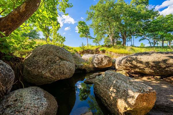 It's rare that live-water properties with true year-round water come on the market in this Region of the Texas Hill Country. Three Creeks Ranch offers 3,300ft of year-round Walker Spring through nearly the entire middle of the ranch, 800ft of Grape Creek, and a 1 acre pond. Prime location in the heart of Texas Wine Country, less than 30 minutes from Hye, Albert, Johnson City, Fredericksburg, and the famous Luckenbach, Texas. Just minutes away are some of the Texas Hill Country's most popular destinations like Wineries, Dancehalls, Breweries, Distilleries, Restaurants, State Parks and more. This area is loaded with Native wildlife and offers a great opportunity for hunting. Wildlife that can be found in the area are: Whitetail Deer, Rio-Grande Turkey, Feral Hogs, Dove, Duck, Bobcat, Coyote, and many exotics like Aoudad, Blackbuck, and the occasional Axis Deer, as well as many other species of wildlife native to this Region of Texas. The History that has taken place on this ranch is truly incredible. The springs on the ranch were used for many years as a stop over for the U.S. Cavalry throughout the 1800s, as the soldiers would water their horses and camp for the night. Many arrowheads and Native American artifacts have also been found on the ranch, with evidence of human activity in this area for 10,000+ years! The ranch is uniquely positioned, back off of a private road, ensuring absolute privacy, and is also surrounded on nearly all sides by two large ranches, one is 2,500+ acres, and the other is 800+/- acres. The only thing you can see or hear on the ranch are the sights and sounds of nature, and flowing water along the creeks, no cars, road noise, just the peace and tranquility that comes with being in the Country