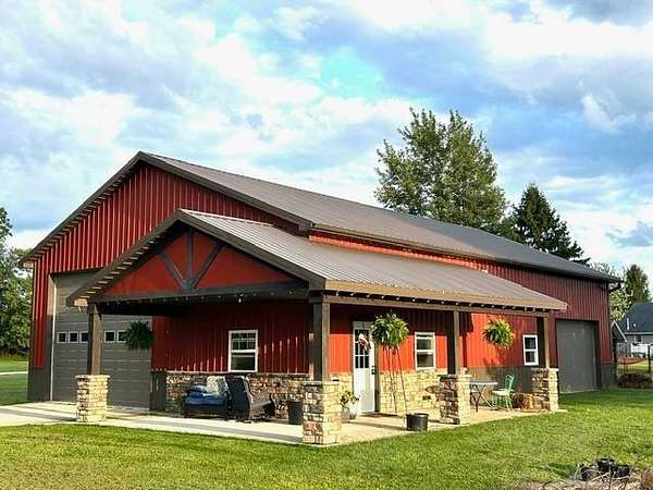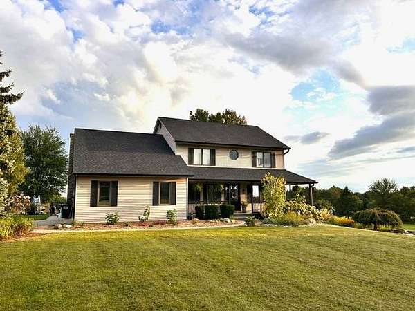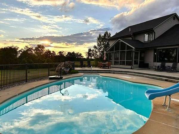 Gorgeous 6.2 acre homestead now available in Ligonier! Easy access to US33 and 6 for commutes to Goshen, Kendallville or Fort Wayne as well as close proximity to the West Noble school complex. This beautifully updated traditional farmhouse features 4,216 sqft, a stunning wrap around porch, 4 bedrooms upstairs, 3.5 bathrooms, a walk-out basement, recently refinished inground concrete pool, and a massive fully finished pole barn (36x56x14) with heat. Private well and septic. New flooring throughout the upstairs (even closets!) and in the finished basement. In the basement you will find copious daylight given the 6 windows plus French doors mixed with plenty of countertop space and outlets for hosting parties. Regularly maintenance HVAC and water heater only 10 years old. Owners recently invested in a new roof and gutters with a one-time warranty transfer. Range and microwave new 2025. Continued updates include primary bathroom suite, secondary upstairs bathroom and main floor half bath. Primary bedroom features walk-in his and her closets; second and third bedrooms also have walk-in closets with closet systems. Mature trees, abundant wildlife and stunning sunsets. This homestead is a true retreat!
