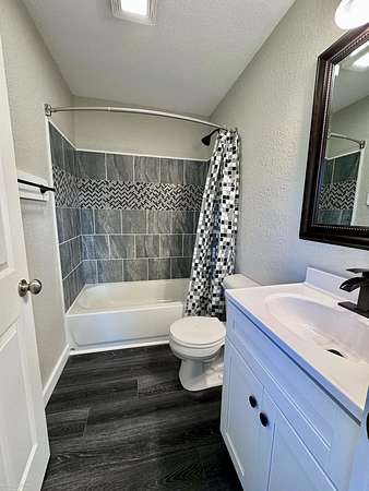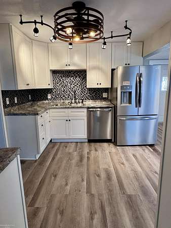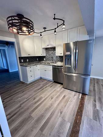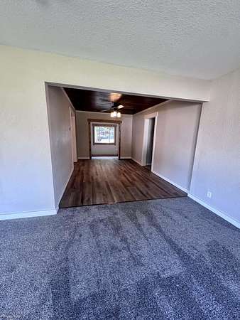 Est $1,566/moBeautifully updated 3-bedroom home offering two garages and a spacious barn. Bedrooms feature cozy carpeting, complemented by new flooring throughout the main living areas. Room sizes are estimated.