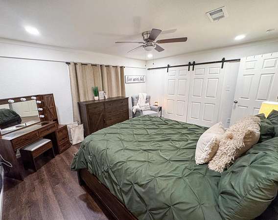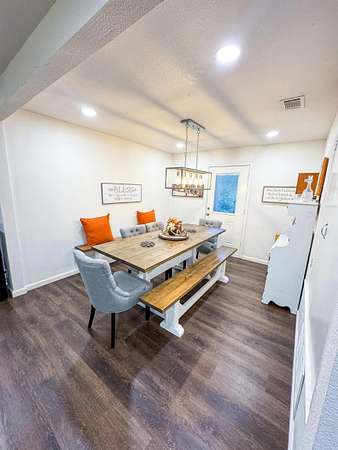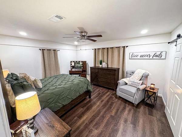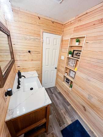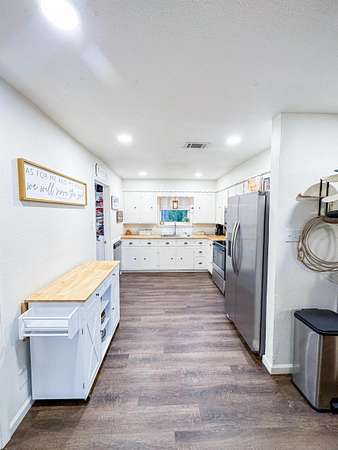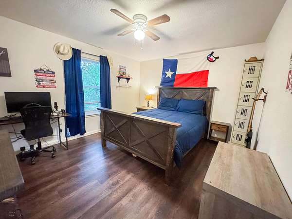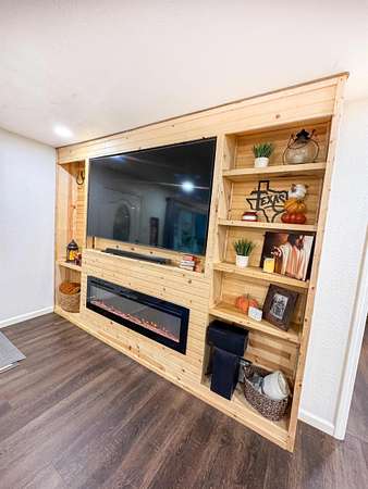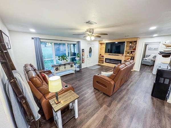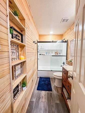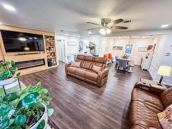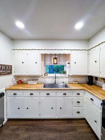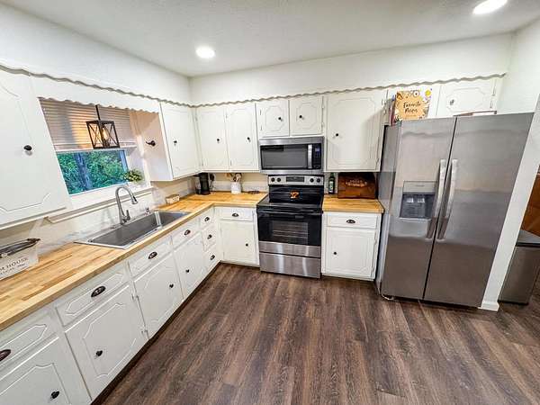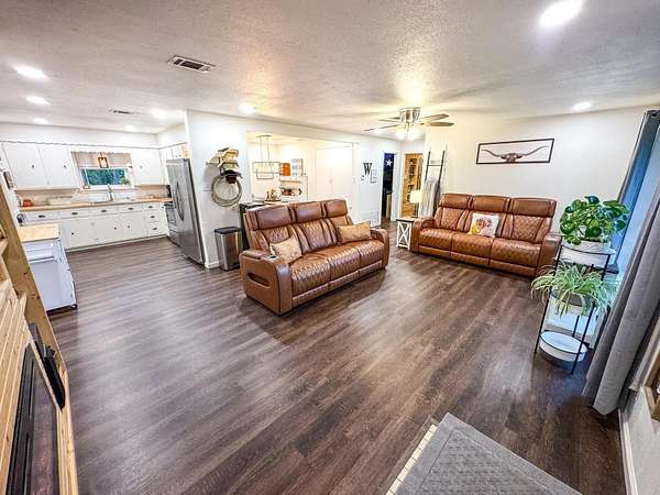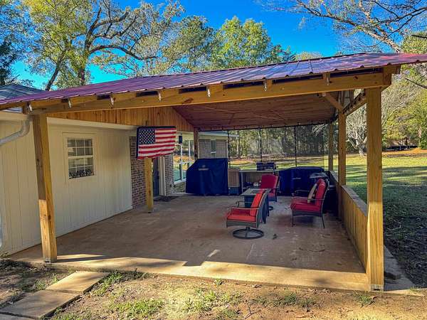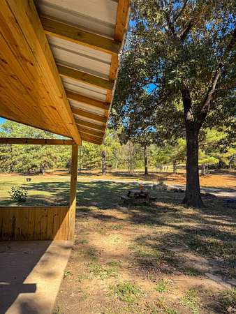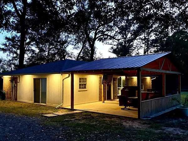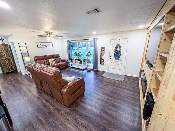 Welcome to your peaceful countryside retreat, nestled on a scenic 3-acre corner lot with frontage on FM 1841 and CR 1810 in the heart of beautiful Centerhill. This charming three-bedroom, one-bathroom home offers the perfect blend of rustic warmth and modern convenience an inviting haven for those seeking privacy, serenity, and space to roam. Inside, the open-concept layout effortlessly connects the living, dining, and kitchen areas, creating a spacious and welcoming atmosphere ideal for everyday living and entertaining. The cozy living room features a recessed electric fireplace, adding ambiance and comfort. The kitchen stands out with gleaming stainless steel appliances, a brand-new stainless farmhouse sink, rich butcher block countertops, and ample cabinetry for both style and functionality. A chic pendant light fixture highlights the adjacent dining area, adding a touch of elegance to every meal. Recent upgrades include a new HVAC system (2023), hot water heater, updated gutters, and a beautifully remodeled bathroom. The generously sized master bedroom offers a peaceful retreat, complete with a massive sliding-door walk-in closet for exceptional storage. The bathroom combines rustic charm with modern finishes, featuring wood-paneled walls and contemporary accents that evoke a spa-like feel. A spacious utility room and pantry add convenience and flexibility to your daily routine. Step outside and enjoy the best of country living. A 384-square-foot covered carport and patio area provide the perfect setting for weekend barbecues, morning coffee, or watching the game. The expansive yard is dotted with mature trees, offering shade, privacy, and a natural connection to the outdoors. The property also includes multiple outbuildings to suit a variety of needs. A metal 840-square-foot building with electricity offers ample workspace or storage. Another 512-square-foot building features electric service and a mini split system, presenting exciting potential for conversion into a mother-in-law suite, artists studio, or workshop. Additional structures include a lean-to and a 50 AMP hookup ideal for RV or camper enthusiasts. Whether you're searching for a full-time residence or a weekend getaway, this property delivers the tranquility of rural living with the comfort and charm of a thoughtfully maintained home.