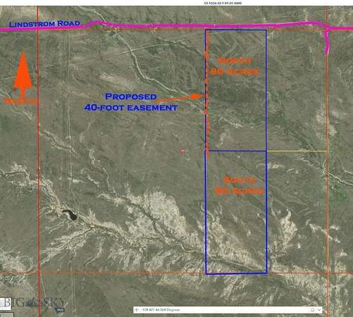 80 acres of Montana grassland and sagebrush just 20 miles north of Billings where the deer and the antelope play. The adjoining 80 acres to the north is also available for the same priced-- 160 acres for $179,800! Only 2.5 miles east of the state highway, then south a half mile on an easement (not built); lots of potential for a private get away. Was homesteaded in 1920. Access is via Lindstrom Road and then a private easement, but buyer will need to do their own investigation and due diligence regarding the easement and access to property. Transmission power lines cross the adjoining northern 80 acres, but not this parcel. The 80 acre parcel to the north (MLS#397946) is also available. An easement crosses the northern 80 acres to provide access to this property. No known covenants, no zoning. Come enjoy some great views of Big Sky country where the deer and the antelope roam.