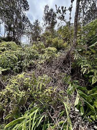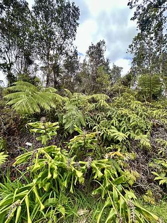 Escape to the cool, misty uplands of Ohia Estates! This lush, nearly half-acre property (approx. 18,300 sq. ft.) offers a pristine botanical sanctuary at a refreshing 3,426-ft elevation-the perfect climate for cozy fireplace nights. The lot is a verdant tapestry of native Ohia trees, Hapuu ferns, Staghorn ferns, and fragrant Kahili ginger, providing natural privacy and a true forest-retreat feel. Situated in Flood Zone X and Lava Zone 3, this property offers a rare combination of security and serenity. Key Features: Unique Layout: A 62' x 150' front section leads via a private 150-ft driveway to a secluded 200' x 72' building area, tucked away from the street for ultimate quiet. Prime Location: Minutes from the artistic heart of Volcano Village. Enjoy easy access to the Sunday Farmer's Market at Cooper Center, local dining, shops, and the post office. Adventure Awaits: Just a short drive to the world-renowned Hawaii Volcanoes National Park.