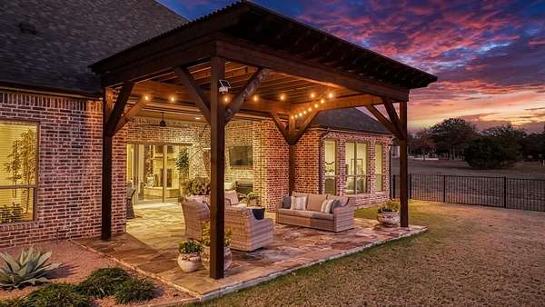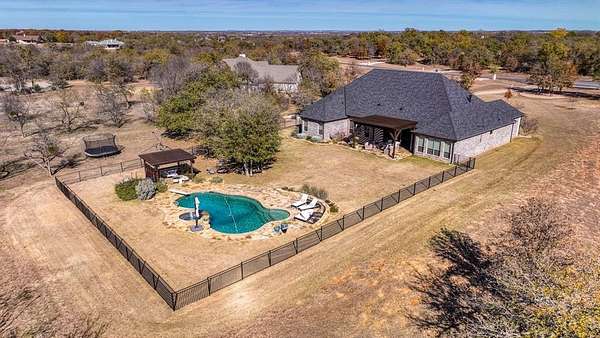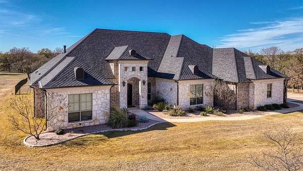 Welcome to Sugar Tree on the Brazos, one of the area’s most sought-after gated communities offering a unique ranch-style atmosphere along the scenic Brazos River and Sugar Tree Golf Course. Located just 20 minutes from Weatherford, this stunning property offers peaceful country living with convenient access to town. Built by renowned custom builder Chris Thomas, this 3,789 sq ft home sits on more than 3 secluded acres in a quiet cul-de-sac—an incredibly rare find in Sugar Tree. The natural setting is truly special, where deer roam freely and tranquil ponds dot the landscape. The home offers 4 spacious bedrooms, 3 baths, a private executive office, and expansive living and entertaining areas. The open-concept floor plan features a gourmet kitchen with top-of-the-line KitchenAid appliances, custom cabinetry, and generous space for gathering with family and guests. The luxury primary suite provides a spa-like experience with a beautifully appointed bath featuring heated floors, a jetted tub, and an oversized double-entry walk-through shower. Thoughtful upgrades throughout the home include spray foam insulation for high energy efficiency, a new Class 4 impact-resistant roof installed in 2024, a family safe room, and a Generac whole-home standby generator with automatic transfer switch. Car enthusiasts will appreciate the oversized 4-car garage, while the large decked attic with stairway access offers storage and potential for future finish-out. Step outside to your resort-style backyard retreat, complete with a heated pool and spa, pergolas, and motorized patio shades—perfect for entertaining guests or simply enjoying the beauty of the surrounding landscape. Golfers will appreciate living alongside Sugar Tree Golf Course, widely considered one of Texas’ finest public courses. Located in highly sought-after Brock ISD, this property combines luxury living with the charm of country life. Come enjoy brilliant Texas star-filled nights from your private country estate.