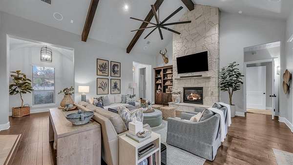 - Built-In Features, Decorative Lighting, Double Vanity, Eat-In Kitchen, Granite Counters, Kitchen Island, Natural Woodwork, Open Floorplan, Pantry, Smart Home System, Vaulted Ceiling(s), Walk-In Closet(s)