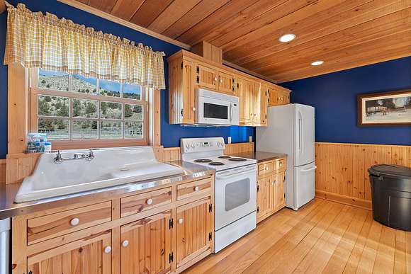 Beyond ranching, Cross Keys Ranch is a multi-dimensional property offering big game and bird hunting, fishing, hiking, rock hounding, ATV and horseback riding, and more. The ranch is fully equipped with a variety of living spaces, including an elegant owner's home featuring a gourmet stainless steel kitchen, four-bedroom suites--including a primary suite--multiple guest rooms, 2.5 baths, and a grand fireplace room. Additional accommodations include multiple manager and ranch-hand residences, remote hunting cabins, a historic 1800s-style dance hall, a church, and a full-scale rodeo arena with a banquet and party hall.