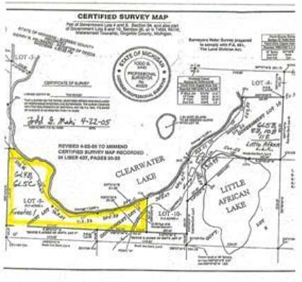 WATERFRONT PROPERTY FOR SALE ON FAMOUS MICHIGAN CISCO CHAIN OF LAKES! Lot 9 is a 25.9+/- Acre Wooded Parcel with 2,685+/- feet of frontage on the southern shore of Clearwater Lake, one the lakes toward the north end of the Cisco Chain of Lakes in Gogebic County of Michigan's Upper Peninsula. This 172-Acre lake is about 10-feet deep and is known for Walleyes, Northern Pike, Largemouth Bass, Crappies, Perch and Bluegills! You will be able to launch your larger fishing boat at the Michigan DNR launch site off Clearwater Lake Road at the north end of the lake. There is a concrete ramp, loading dock, vault toilet and ample parking there. With a little clearing you will be able to launch your kayak or canoe from your own front yard, and enjoy swimming from the sandy beach! This lake is surrounded by the Ottawa National Forest, with nearly one million acres of hardwood forests, crystal clear lakes, remote wilderness area, and a multitude of wildlife species. Wildlife is abundant, including white-tailed deer, black bear, bobcat, coyote, fox, porcupines, otter, smaller mammals, waterfowl, bald eagles and ospreys. Loons regularly nest in the more remote areas. The Cisco Chain of Lakes is made up of 14 (Locals say there are 15) interconnected lakes which straddle the border between Michigan and Wisconsin and have over 4,000 acres of water. Clearwater Lake doesn't have a navigable channel connecting it to nearby Little African Lake, but a small creek meanders the few hundred yards between the two lakes. Wintertime offers outstanding snowmobiling, cross-country skiing and snowshoeing. Sportspersons from Michigan and Wisconsin have cooperated to provide snowmobile trails that span the borderlands. Snowmobile Trail No. 13 is runs just west of Co Rd 531, just a couple miles away. Spring wildflowers provide a beautiful backdrop for woodland hikes. Summer recreation includes swimming, picnics, and backpacking. The Fall provides spectacular color displays in the forests. The Cisco Chain of Lakes area is a great place to live and a great place to visit in all seasons - If you are seeking the north woods wilderness atmosphere for your seasonal cabin or year round home, schedule your private tour today! The lakes of the Cisco Chain of Lakes that are entirely in Michigan are the Clearwater Lake (172 surface acres), Little African Lake (31 acres), Cisco Lake (567 acres), Thousand Island Lake (1,009 acres), Big African Lake (86 acres), Record Lake (68 acres), Lindsley Lake (156 acres), Fishhawk Lake (77 aces), Morley Lake (59 acres), Poor Lake (106 acres), Indian Lake (129 acres), East Bay Lake (277 acres). Big Lake(733 acres) and West Bay Lake (362 acres) are located in both states. Mamie Lake (337 acres) is entirely within Wisconsin. Originally not connected with navigable streams, 19th century loggers dammed the Cisco Lake outlet to the Cisco Branch of the Ontonagon River to facilitate floating logs out of the area.