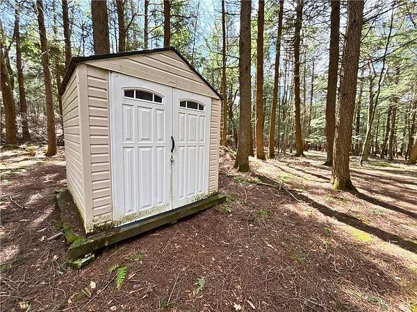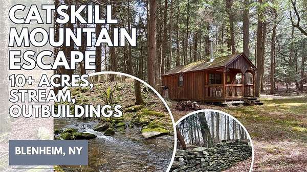 Tucked away on a private road in the Town of Blenheim, this 10.25+/- acre retreat is the kind of property people dream about-but rarely find. A long driveway leads you into a peaceful, mostly level and wooded setting, where the noise of the world fades and nature takes over. At the heart of the property, you'll find a beautiful, flowing stream, historic stone walls that tell stories of the past, and a small clearing perfect for relaxing, gathering, or simply taking it all in. The land is improved with three outbuildings, including a charming Amish-built barn-style shed complete with a covered front porch and a small solar setup-offering just the right touch of rustic comfort. Whether you're looking for a quiet getaway, a hunting camp, or a place to potentially build and create your own Catskills retreat, this property offers a rare combination of privacy, usability, and character. And the location? It's hard to beat. Just over 2:30 from the GWB, you're just minutes from outdoor adventure and local gems like Mine Kill State Park (and its stunning waterfall), Vroman's Nose for unforgettable hikes, the Gilboa Museum, Howe Caverns, Max V. Shaul State Park, Lansing Manor, and the iconic Blenheim Covered Bridge. Plus, you're only about 40 minutes to some of the Catskills' best skiing, including Windham Mountain, Hunter Mountain, and Plattekill Mountain. This is more than land-it's a place to slow down, reconnect, and create something truly special.