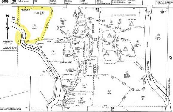 North on Live Oak Canyon Road from Baseline - land will be on the right hand side