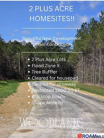 Come experience The Woodlands! A brand new, one of a kind development where nature and home blend together perfectly. Nestled among the trees, these gorgeous homesites have already been cleared for a housepad and driveway. The Woodlands is ready for your new home. All homesites are estate size, consisting of at least 2+ acres per, offering unparalleled privacy and tranquility. Immerse yourself in the serenity of nature - where beautiful trees and untouched greenery create a picturesque backdrop for your dream home. This community is designed to blend harmoniously with natural surroundings, preserving the beauty of the land while providing the perfect place to unwind and reconnect with the outdoors. Privacy is a guarantee with a preserved buffer of trees on the front, sides and rear of every lot. The Woodlands has paved access with smooth blacktop roads and natural gas. Conveniently located a short drive from Prairieville, Gonzales, Juban Crossing, and Baton Rouge. It's the ideal blend of rural charm and convenience with easy access to nearby amenities. Take advantage of one of our beautiful building packages, or let us build you a custom dream home. No Flood Insurance Required!!