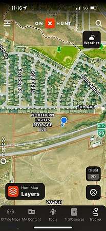 Access to property is at the intersection of Sun Ave and Northern Lights Road.