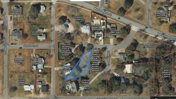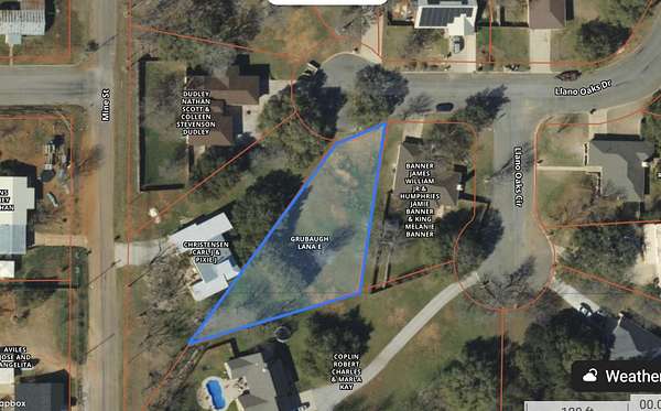 Est $483/moA beautiful lot with aa elm and large liveoak which is placed on the west side of the lot providing the perfect afternoon and evening shade for the lot and it would be in the back yard. It is in a whole block called Llano Oaks Subdivision. Every house is newer and beautifully built. The subdivision is just off CR 152 which can take you to the park and golf course and just east of the court house.