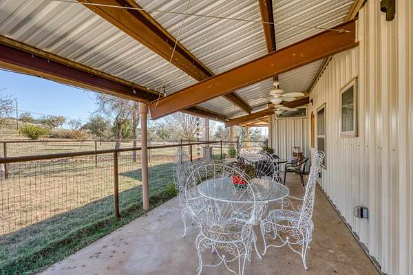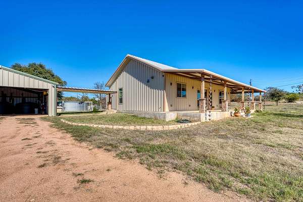 Spacious 3-Bedroom Home with Workshop/Guest Quarters on 5+ Acres. This gated property offers the perfect blend of comfort, and sustainability across more than five acres. The main house is 2310 sq ft, 3 bedroom, 2.5 baths, one of the guest bedrooms is ADA equipped. Features include an open-concept design with abundant cabinetry in an oversized kitchen, low e-windows, spacious laundry room and oversized doors. The luxurious master suite features a California closet. Workshop/Guest quarters offer 1612 square feet of fully air-conditioned work and living space. Outdoor features include 2-1500-gallon storage tanks fed by a 12 gallon-per-minute well. Expansive 30,000 rainwater collection system supplying both home and workshop. A covered walkway from carport to home for all-weather protection. Fenced in area for your family pets. Access to the Llano river through the homeowner's park. Perfect location for a family home or a great retreat.