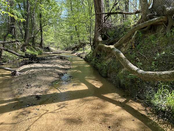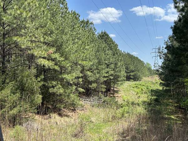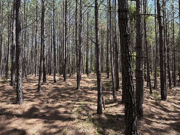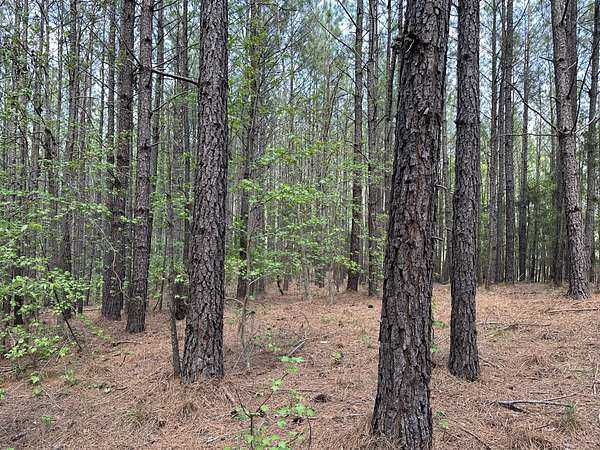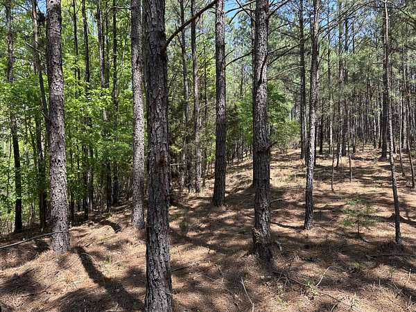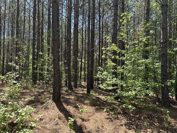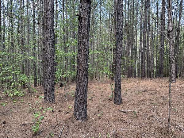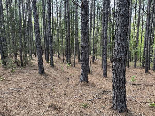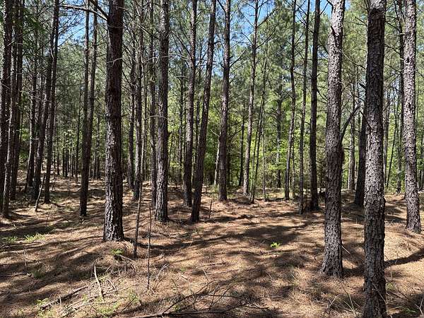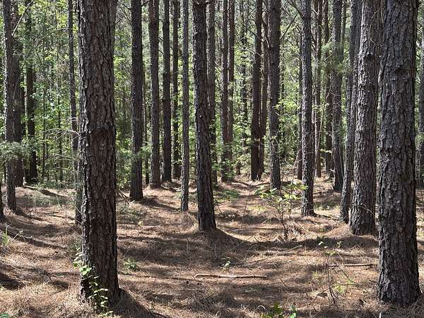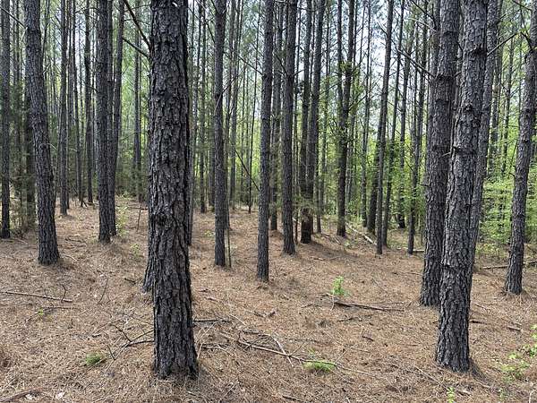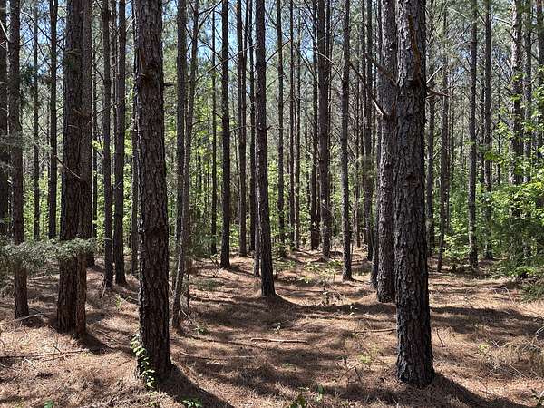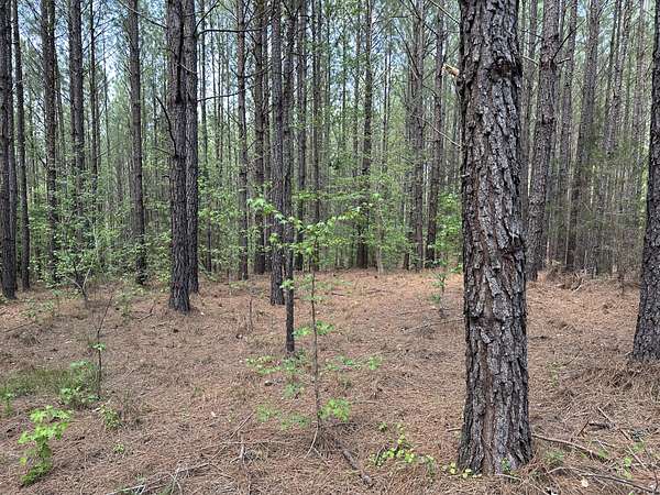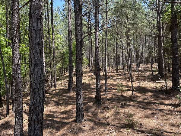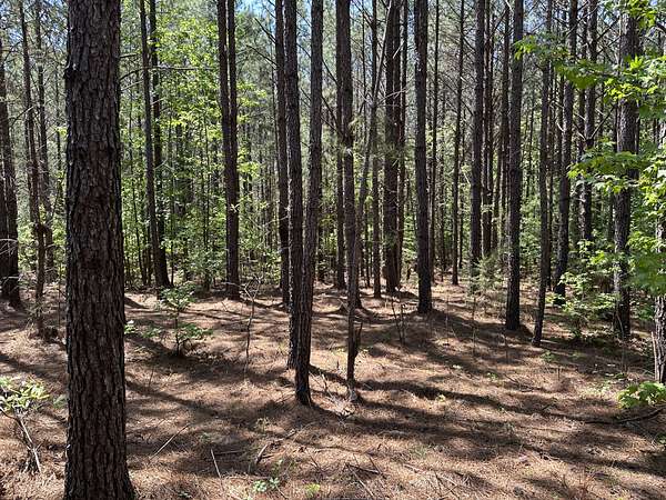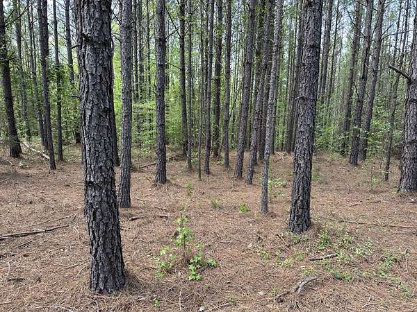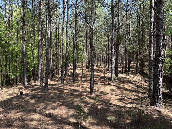 About 85 acres are forested with loblolly pine planted in 2007. These trees are ready for their first thinning. Much of the pine area is gently rolling ridgetops. Side slopes are gentle in some places and steeper in others. Some old gullies are included in the pine area.