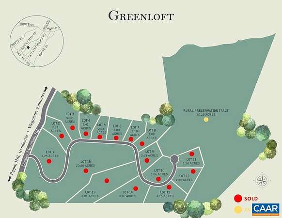 Minutes from Downtown Charlottesville, UVA, Wegmans, and 5th Street Station, Greenloft is an intimate community of beautiful custom homes. Lot 15 is truly the crown jewel of the neighborhood--8.01 acres perched at the highest point, offering sweeping views in every direction. The property has already been cleared, providing a perfect canvas for your dream home. A rare opportunity to build on one of the most desirable sites in the area.