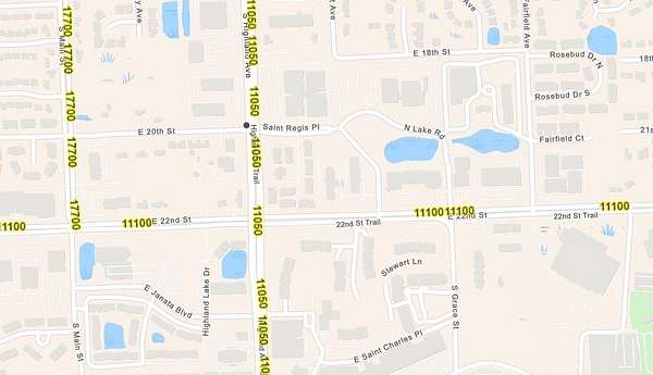 FROM THE INTERSECTION OF S HIGHLAND STREET AND E 22ND STREET, HEAD NORTH ON S HIGHLAND STREET TOWARDS ST REGIS DRIVE, TURN RIGHT ONTO ST REGIS DRIVE, PROPERTY IS LOCATED ON THE SOUTH SIDE OF THE STREET.