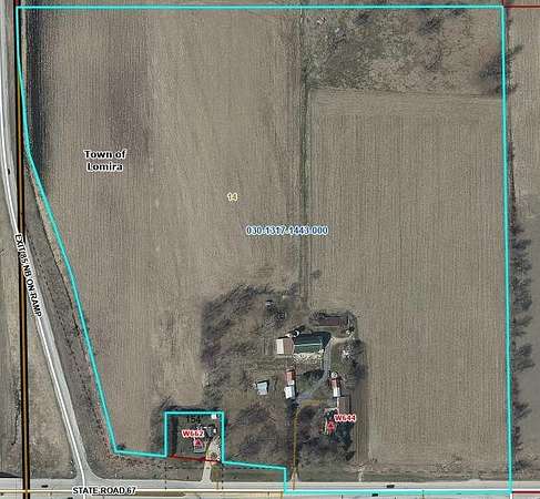 Est $12,491/mo74.5 acres at the intersection of US Hwy 41 and 67, offering a prime location for commercial and residential development opportunity! Exposure to over 38,000 vehicles daily. This property offers 64 acres tillable, multiple outbuildings and a 4 BR dwelling. 64.2 acres of tillable land is leased @ $180/acre for the 2025 crop year. The lease is voidable. Located within the projected Lomira Comprehensive Growth Plan . Additional parcel 030-1317-1442-000 (39.733 acres) also included. Measurements are approximate and should be verified by buyer if material.