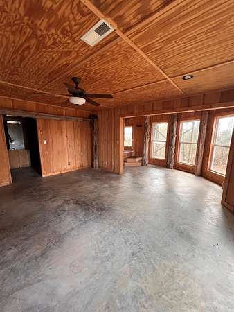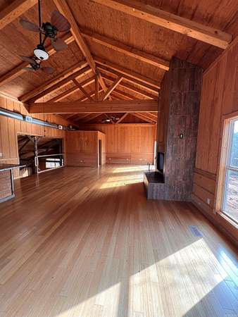 When you enter this home, you are welcomed by a striking multi-level layout that highlights the home's unique design. Hand-crafted log accents throughout and concrete floors on the main. The main level features an open floor plan kitchen, dining area, and a cozy den, offering a functional layout for everyday living. The lower level includes 1 of the primary suites w/ a jetted tub leading into the ensuite, and an additional bedroom. * Take the wood staircase to the great room w/ a grand fireplace as the focal point. Floor-to-ceiling windows bring in abundant natural light & offer scenic lake views while overlooking a spacious deck. * Just a few steps above, the 2nd primary suite provides additional privacy w/ floor-to-ceiling windows with lake views and ensuite. * The property also presents an opportunity for short-term rental use, offering a quiet retreat with privacy, space, and natural surroundings. Located on a private road, the home provides a peaceful setting with convenient access to town amenities.
