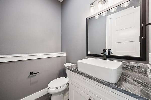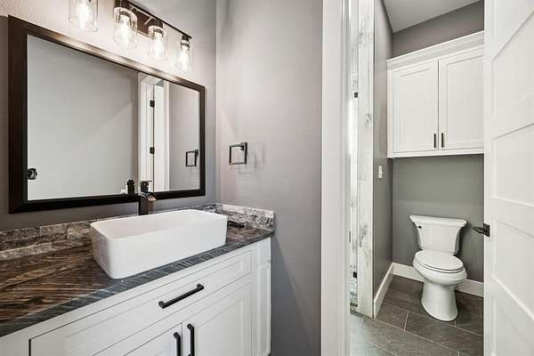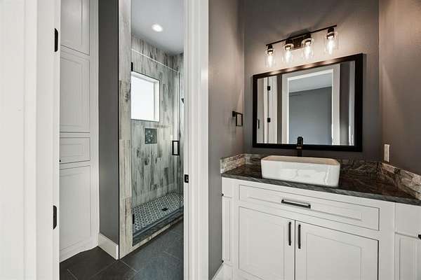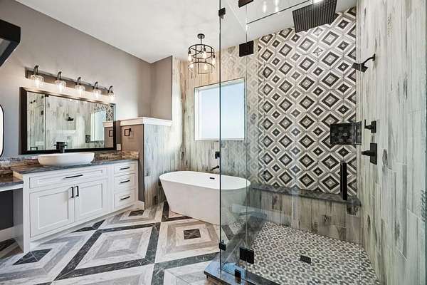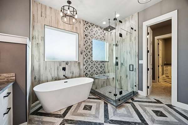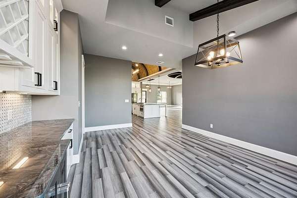 - Decorative Lighting, Double Vanity, Eat-In Kitchen, Kitchen Island, Open Floorplan, Vaulted Ceiling(s)