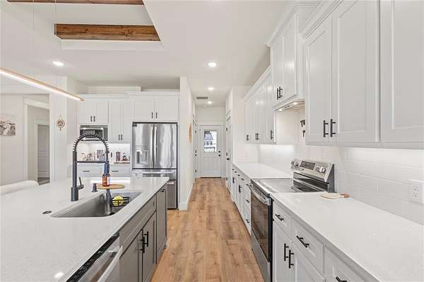 No HOA! 1.6 ACRES! This stunning modern farmhouse built in 2024 perfectly blends timeless design with today's energy-efficient construction. Step inside to an open-concept layout filled with natural light, clean lines, and high-end finishes throughout. The spacious living area flows seamlessly into a beautifully appointed kitchen featuring custom cabinetry, sleek countertops, a large island, and modern fixtures--ideal for both everyday living and entertaining. Built with spray foam insulation, this home offers superior energy efficiency, enhanced comfort, and lower utility costs year-round. Thoughtful craftsmanship and quality materials provide peace of mind along with stylish appeal. The primary suite offers a private retreat with a spa-inspired bath and generous closet space, while additional bedrooms provide flexibility for guests, family, or a home office.