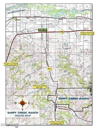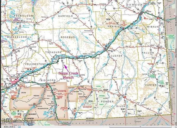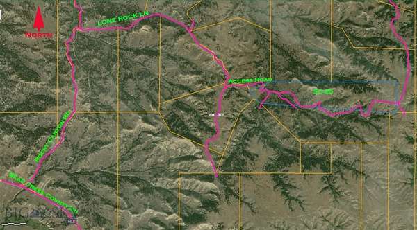 At I-94 take Exit 72. Take Hwy 384 south 11 miles to Bear Crk rd, left for 2.2 miles to Rock Canyon Ln. Left for 1.6 miles, then R. for 1.9 miles,over ridge & down, staying left through fence to land.