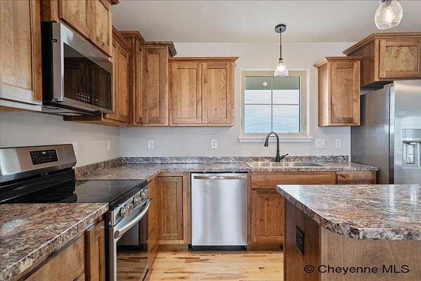 This brand-new, custom-built home by Leaning Tree Homes offers the perfect combination of modern living and serene rural charm, just north of Cheyenne. Set on a peaceful 6-acre lot, this home provides the tranquility you desire while still offering easy access to the city. Boasting the popular "Eric Plan," a spacious ranch-style open floor plan, this home is perfect for both entertaining and everyday living. 2 Bedrooms and 2 Bathrooms conveniently located on the same level. Oversized 2-Car Attached Garage with ample space for longer vehicles and extra storage space. Open Concept Living with a bright and inviting living space designed to accommodate family gatherings and relaxing evenings at home. The remainder of the basement can be fully finished at an additional cost, giving you the flexibility to create a custom space for whatever your needs may be. Enjoy year-round comfort with central air-conditioning and a 95% high-efficiency forced air furnace. Start your day with stunning sunrises and unwind with picturesque sunsets. This home offers the perfect backdrop for enjoying nature's beauty all year long. Handy Directions From Downtown Cheyenne: Go east on US Interstate 80 for 15 miles. Take Exit #377 (also known as Hillsdale Exit). Turn left & drive underneath US Interstate 80. Turn right at TA Truck Stop. Head east for 3 miles along the US 80 Service Road. Turn right on Road 143. Go 1 mile south on Road 143. Turn right onto Augustus Pass. Follow Road to Lonesome Dove Trail. About Leaning Tree Homes: With over 30 years of experience, Leaning Tree Homes is a trusted name in southeast Wyoming, known for their dedication to quality and customer service. Specializing in custom-built homes, Leaning Tree Homes offers unparalleled craftsmanship and attention to detail. Whether you're building your dream home or looking for your next project, Leaning Tree Homes will help you every step of the way. Call the listing agents today for more information on this new construction home or to inquire about other available properties in the area. Your future dream home awaits!