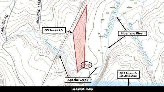 Welcome to the Ghost River Ranch subdivision. This 35 acre parcel offers unobstructed views of mesas, Greenhorn Mountain, and the Spanish Peaks. Situated at the end of a cul-de-sac, you'll find seclusion and privacy while still in a protected, covenanted subdivision that has year-round road maintenance. While walking the property, you could see mule deer, elk, bear, wild turkey, and antelope! This property has a seasonal creek, Apache Creek, running through it. The Huerfano River is also nearby. Power is close, as seen in the photos. The town of Walsenburg is only 20 minutes away, for all of your shopping and medical needs. Check out this property today, find your building site, and plan your future!