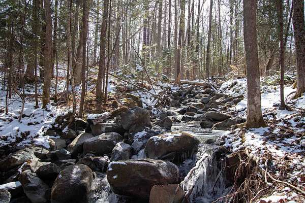 Just a half-mile up Concord’s town-maintained Long Hill Road, this surveyed 41.5-acre tract balances deep-woods quiet with easy reach: paved Route 2 is three minutes away, Boston is roughly a three-hour, 175-mile drive, and Montréal about four hours, 254 miles. South-facing benches reveal White-Mountain views after selective clearing and bask in day-long sun ideal for passive-solar or a small ground array while exceptionally dark skies (Bortle 3-4) make the ridgeline a natural astro-photography perch. Rolling, flood-safe topography includes a year-round brook and mixed maple-spruce stands that filter fall color and spring songbird migrations. Overhead power is already at the 784 feet of frontage, and NEK Broadband’s fiber build now under way in Concord will bring gig-speed service down Long Hill Road rare bandwidth for the Northeast Kingdom. A groomed VAST snowmobile corridor clips the upper tier, turning the property itself into a trailhead, while the “adventure triangle” of Burke Mountain skiing, Kingdom Trails biking, and Moore Reservoir boating lies 15–20 minutes in three directions. Maples support a boutique sugaring hobby; south-slope clearings invite pollinator plots or orchard rows; and the forest canopy is large enough to explore emerging carbon-credit or habitat-incentive programs at the owner’s pace. Carrying costs stay low 2024 taxes work out to about $26 per acre and can drop sharply by enrolling in Vermont’s Use-Value (Current Use) program.