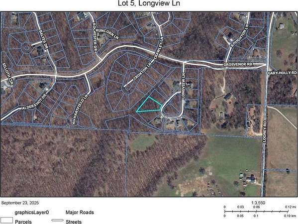 From I-49, drive north toward Bella Vista. Take the exit to Bella Vista and turn right on Hwy 71. Take exit for AR-340 (Lancashire Blvd) and turn right at light. Turn right on Trafalgar Rd. Turn left on Grosvenor Rd. Turn left to stay on Grosvenor Rd. Turn right on Longview Lane. Bear right at fork. Lot is on the right. GPS coordinates are 36.479298, -94.165677.