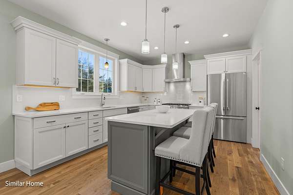 Welcome to Longview Place—Brentwood’s most desirable new neighborhood, along the Exeter River, offering 2 to nearly 7 acre homesites & each residence celebrates space, serenity, & design that endures. This modern farmhouse pairs timeless curb appeal with a floor plan made for everyday living. An inviting covered porch opens to a bright foyer and sightlines straight through the main level. The chef’s kitchen features abundant cabinetry, plenty of prep space, & a handy pantry. It opens to the dining area & sun-filled living room for easy entertaining, & sliders lead to a 12’×16’ composite deck for effortless indoor–outdoor flow. Direct entry from the 2 car garage & a powder room add everyday convenience. Upstairs, the primary suite is a calm retreat with a walk-in closet & a spa-inspired bath with dual vanities, custom tiled shower, & soaking tub. 3 additional bedrooms, a full bath, & 2nd floor laundry deliver comfort & practicality for everyone. This home combines architectural character with quality craftsmanship at every turn. Durable CertainTeed siding, Harvey Low-E windows, energy-efficient systems, & central A/C provide comfort & performance year-round. The exterior is completed with a paved driveway, paver walkway, & landscaping that welcomes you home. Tucked just off Stone Creek Dr, Longview Place puts you minutes to Epping shopping & dining, beaches via Rt. 101, & quick connections south to Rt. 495. No HOA or fees—just the joy of homeownership made simple.