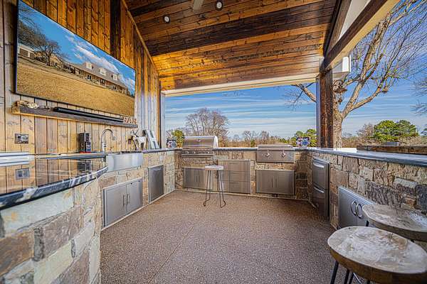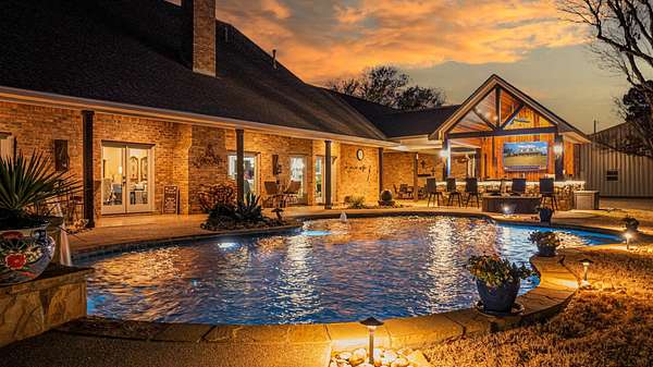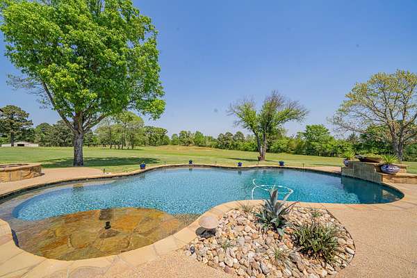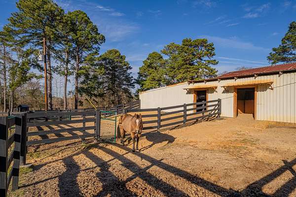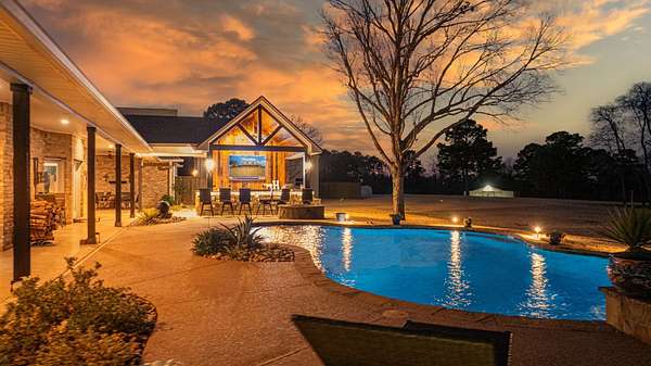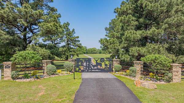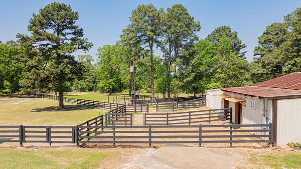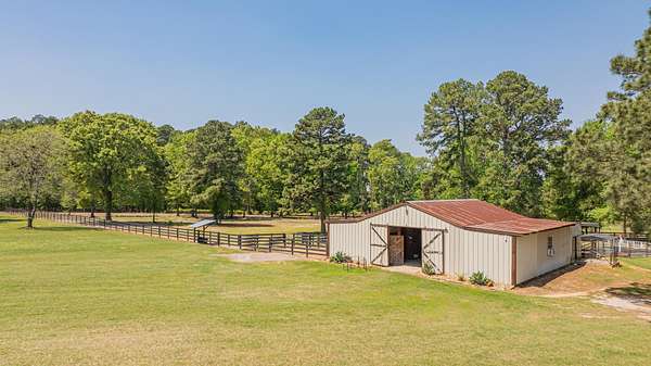Welcome to your exceptional 80-acre ranch in Longview, Texas-- where luxury and the serenity of country living converge! This stunning, gated, fully fenced estate is designed to meet all your desires and more. The main house boasts an impressive3,823 square feet of elegant living space, featuring three spacious bedrooms, three full bathrooms, a half bath, a versatile bonus room, and an office that can easily serve as a fourth bedroom. Every detail has been meticulously maintained, showcasing an outstanding floor plan with hardwood floors, soaring ceilings, two wood-burning fireplaces, and an eye-catchingsaltwater fish tank in the living room. The kitchen is a chef's dream, complete with granite countertops, travertine tile, a gas stove, and generous gathering areas. The main bedroom, located on the ground floor, provides immediate access to all your outdoor entertainment options. Step outside into your private oasis, featuring a spectacular pool and a newly equipped outdoor kitchen--perfect for hosting unforgettable gatherings. The 960-square-foot guest house has undergone a complete update, making it ideal for accommodating guests or a ranch hand. This property also includes a brand-new 40 x 40 shop, two fully stocked ponds, and a well-appointed horse barn with two oversized stalls and a corral. With coastal Bermuda planted for hay production and a year-round spring flowing through the landscape, this ranch is a true gem. You'll find an abundance of wildlife, including white-tailed deer ready for harvest. This ranch is not just a property; it's an investment in a lifestyle and is strategically located in an area poised for rising land values. Don't hesitate--call today for your exclusive private showing and claim this remarkable opportunity!
