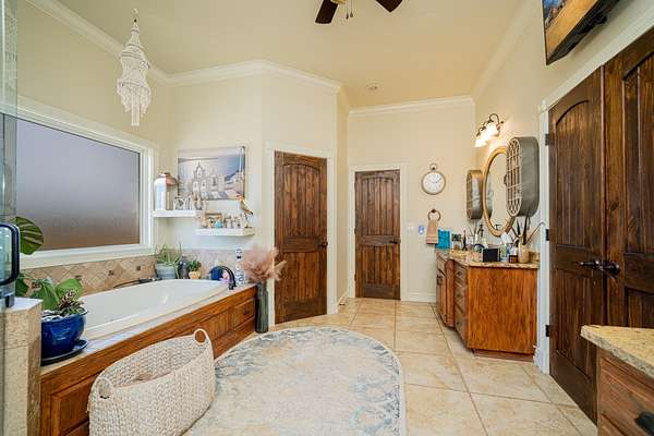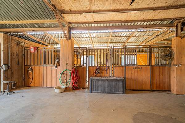 - Auto Sprinkler, Barn, Barn/Stable, Creek, Deck Covered, Fence, Guest Quarters, Outside BBQ Grill, Patio Covered, Paved Interior Roads, Pond, Pool, Stables, Storage Building, Storage Buildings