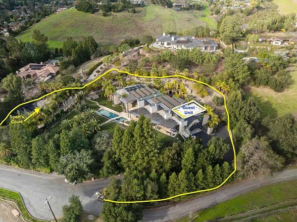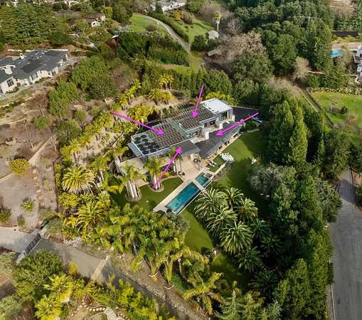Motivated sellers! PrivateResortLiving. Los Altos Hills with Palo Alto Schools! Features eight bedrooms and 11 bathrooms, including a guest house/ADU with a full kitchen, living room, and separate entrance, built in 2022. It offers a formal dining room, a grand living room, limestone terraces, balconies, lush landscaping with over 20 palm trees, waterfalls, a home theater with 16 leather recliners, a wine cellar, an elevator, a fully equipped gym, and five-car garages with EV charging stations. Outdoor Amenities include an infinity Pool, BBQ, SportCourt, terraces and balconies, Limestone finishes, and a solar system. Perfect for TechExecutives and GlobalBuyers, the outdoor spaces are designed for unforgettable moments, whether hosting summer parties or unwinding on a peaceful evening under the stars. Quick access to Meta, Google, Apple, SFO, SJC, Stanford, Stanford University. Brand-new TPO roof with a 25-year warranty.