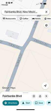 Follow El Cerro Lp to NM-47 S Turn right onto NM-47 S. Continue on Vellejos Rd. Drive to Fairbanks Blvd. The property is on the corner of Fairbanks/La Entrada.