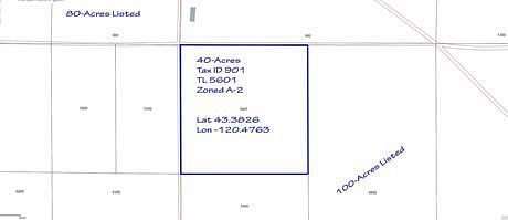 40 Spectacular Acres fenced on one side with great packed gravel and dirt access. Power runs the full length of the east side of this huge parcel in an area of excellent well water production.This lovely parcel will make a great homesite and is sized right for horses, cows, farming, or ranching production. There are established homes and ranches in the area and the area is perfect for hay production. A very nice flat parcel with access roads on 2 sides. View on Google Earth at GPS Lat 43.3826 and Lon -120.4763 Ride your ATV-OHV-Side-By-Side to the dunes. Exceptional parcels available in this area.