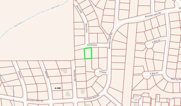 From 2147 turn into Thanksgiving Mountain, then turn right onto Great Western, turn left onto Dew Drop, then turn onto Mountain Dew, then right onto Gunsmoke, the lot is located on the left where Miss Kitty and Gunsmoke intersect.